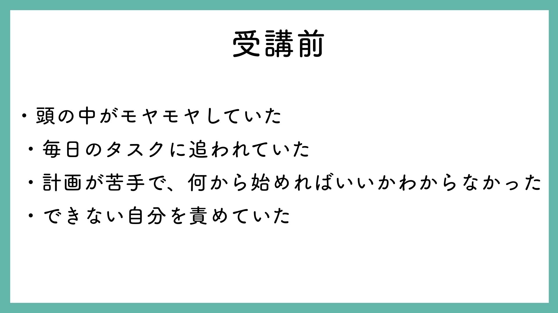 見えなかった時間が見えるようになり、やることの手順がわかりました。