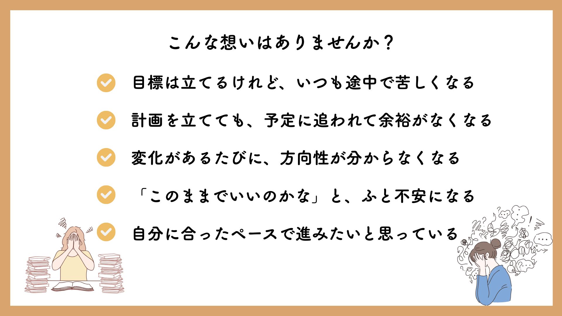 もし、ひとつでも当てはまったら、この講座はあなたのための時間です。